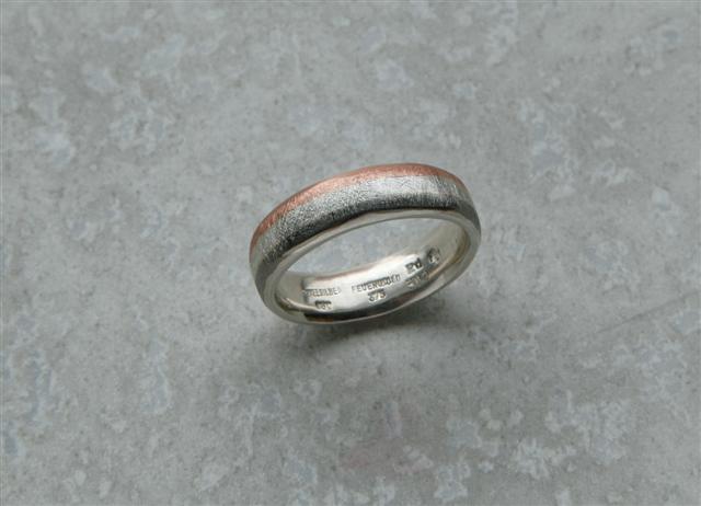 Eismattring mehrfarbig in Schneesilber 935, Rotgold 917 und Palladium 375.
