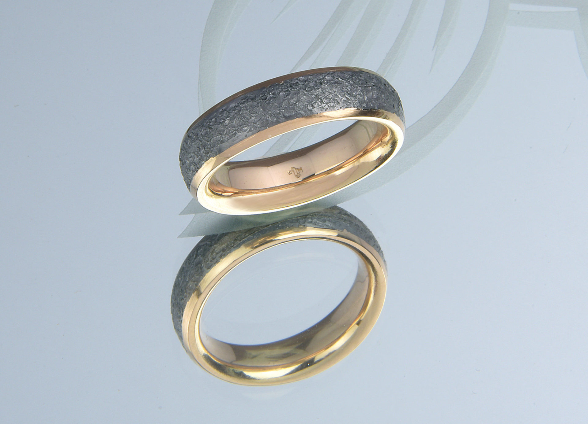 Eisschlagring in Tantal mit Innenring aus Rotgold 585.