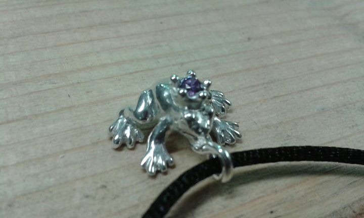 Froschkönig in Wachs Modeliert und in silber gegossenSilber 925 mit Amethyst