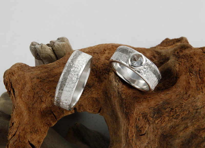 Eisschlagringe,im Damenring ist mit Peridot gefaßtSchneesilber 935Palladium 375