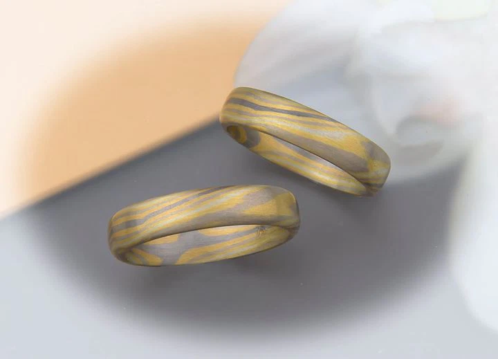 Mokume Gane Ringe mit zwei Sterne InnenGelbgold 917Palladium 500Palladiumweißgold 585Silberweißgold 375