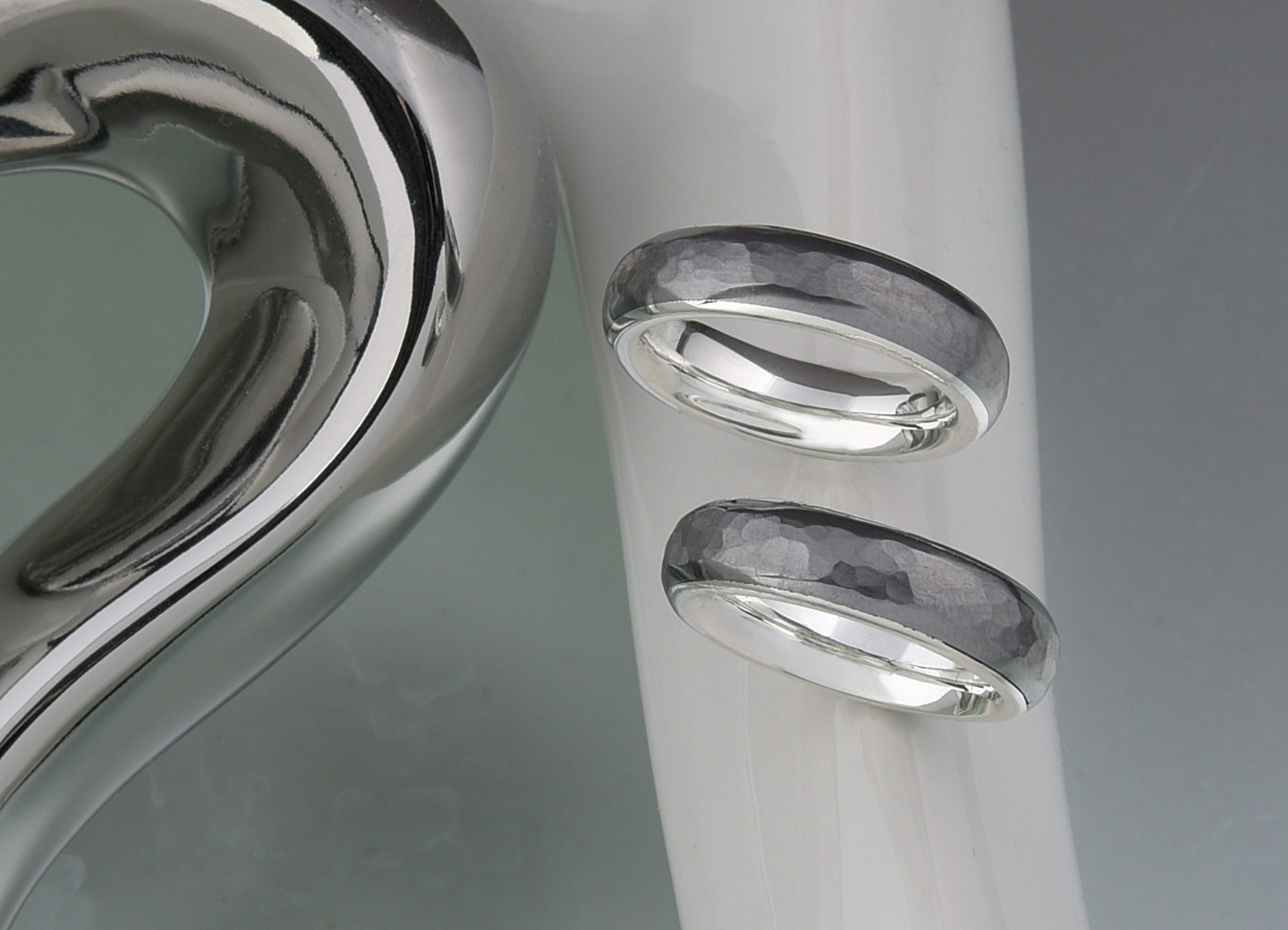 Mehrfarbige Schmiederinge in Tantal mit einen Innenring aus Schneesilber 935. Beide Materialien sind anlaufbestäbdig und Antialergen.